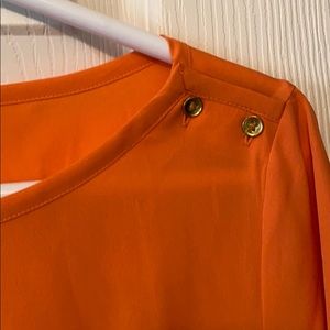 Orange blouse, quarter sleeve, never worn. No tags. Great condition