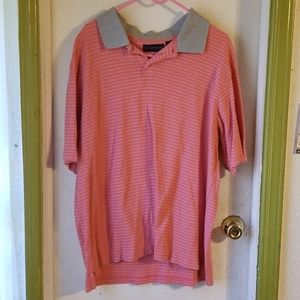Pink and gray striped polo shirt