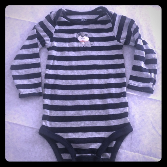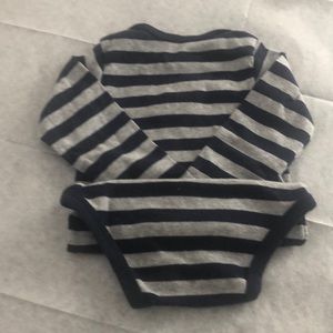 Long sleeve snap bottom shirt, blue/ gray stripes