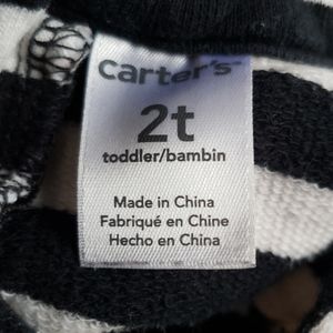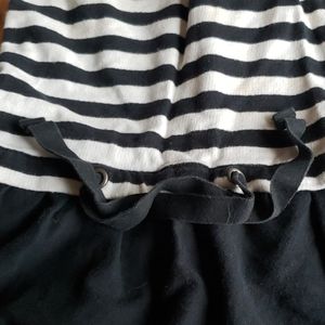 This is an adorable black-and-white striped Shirt also could be worn as a dress.. It does have some stains But to my eye they were barely visible. Last photo does show those marks