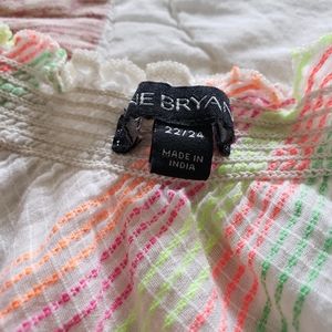 Nice, thin multi color shirt. In last picture is a small piece of thread that is loose. Make an offer