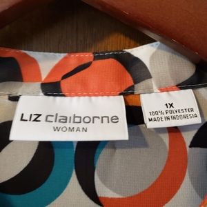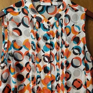 1X sleeveless dress/casual shirt , it has black, orange and turquoise green in it