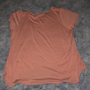 This is a pale pink shirt w/ a slight opening in the middle. Only worn like 2 times it is now just too big for me.