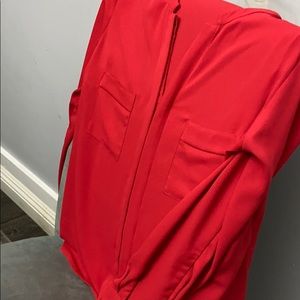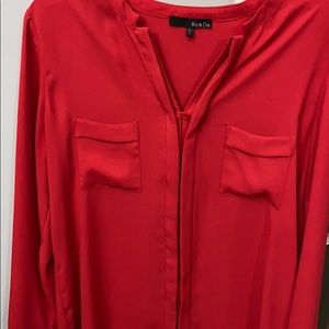 Beautiful classy long sleeve red shirt. The front buttons from top to bottom from v-neck . 100% polyester. Can dress up or casual. In great condition like new.