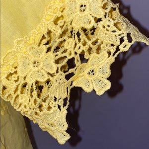 Sheer Bright yellow top embroidering around the arms flowers on the Collar and on the front button down