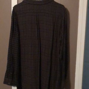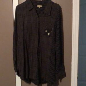 Green and black plaid and check mixed. Button down long sleeve with rhinestone on left side pocket