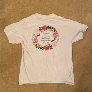 there are a couple little stans on the front but nothing major! It is a very casual t shirt that you can wear wherever you’d like:)