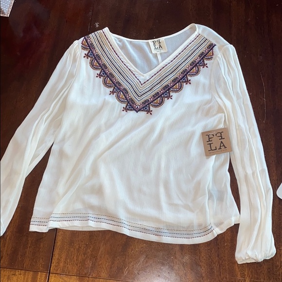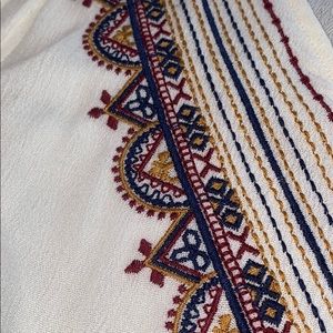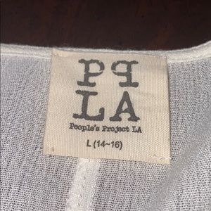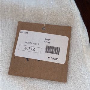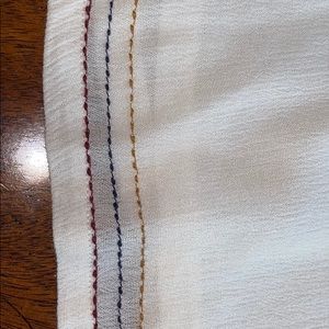 This shirt is from peoples project LA. It has never been worn and has tags. The color of the shirt is ivory with red, yellow and blue stitching on the v-neck of the shirt and on the bottom of the shirt. Originally $47.00 now $10!!