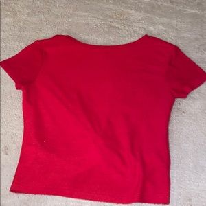 This red shirt is a size small and has been worn twice. It is in good quality.