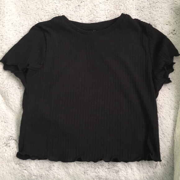 Cute black crop top with ruffles! New without tags! I bought this shirt a size too small. It still fits me it’s just a bit scandalous for my liking!