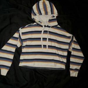 Striped long sleeve crop top hoody