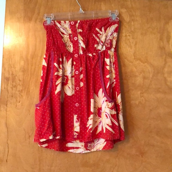 Really cute strapless top with buttons and pockets! In great condition!