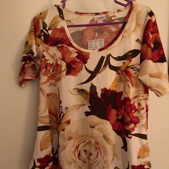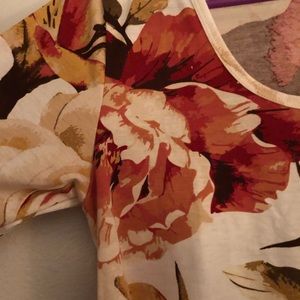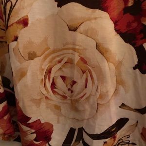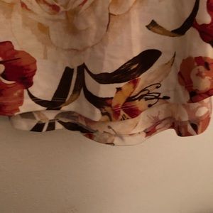 Floral dress shirt on ivory background with red green and pink floral