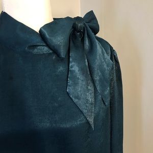 Teal blue long sleeve bow tie dress shirt, smaller than actual size