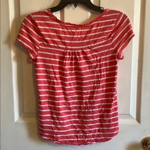 Pink and white striped short sleeve shirt