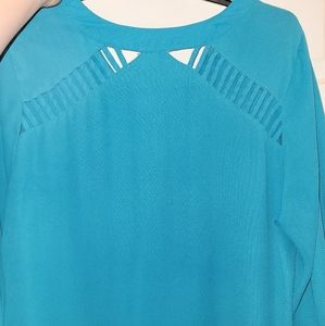 Blue thin blouse. Functional zipper. 3/4 sleeves