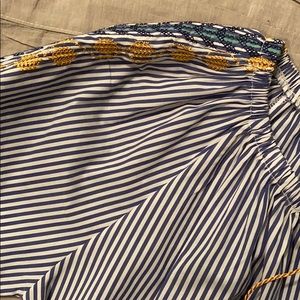A brand new shirt with tags bought from Syria can fit anyone from a size 6-12 it stretches but isn’t tight