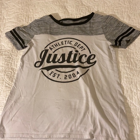 Justice shirt, Gray black and white has a little pink spot on it but not very noticeable