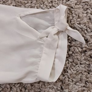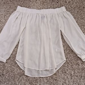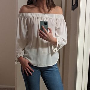 White chiffon off the shoulder blouse with 3/4 length sleeve