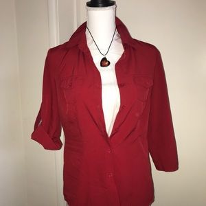 Rock the red! scarlet shirt with 3/4 sleeves with fold up strap has a little Lycra stretch, fitted with button down pockets, size S. very sexy........