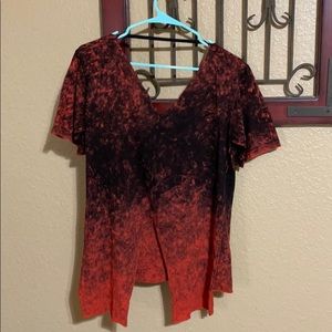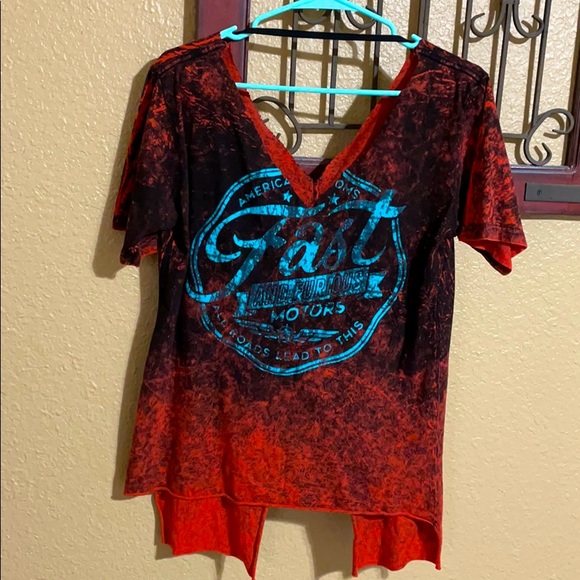 Shirt from buckle fast and furious brand size small has a small opening in the back and can be worn off the shoulder .