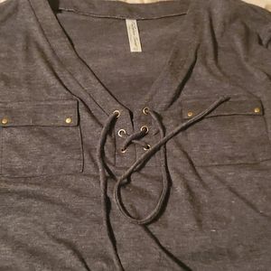 Dark gray slouch shirt, v neck. With copper details and gathering on sides. Only worn one or two times.