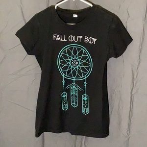 “Fall Out Boy” Band tee-shirt. Has cute dream catcher design in middle. Is a bit tight fitting