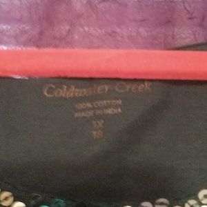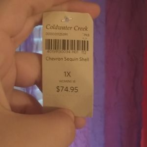 This shirt is a blue and silver sequences covered zip zag patterned shirt