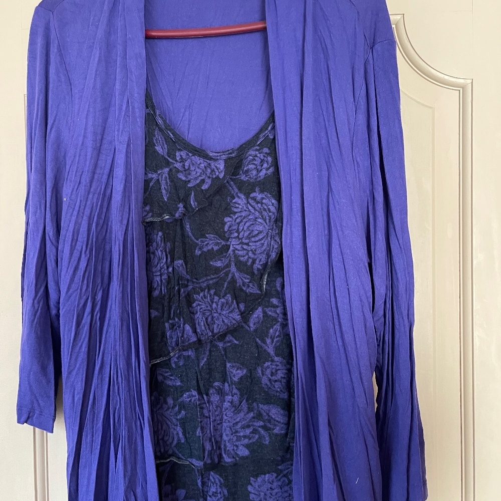Purple and black top with attached jacket. All one piece.