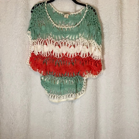 Short sleeve knit shirt green orange & white
