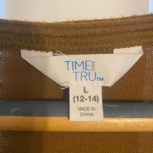 Long sleeve never worn only tried on. Color is mustard
