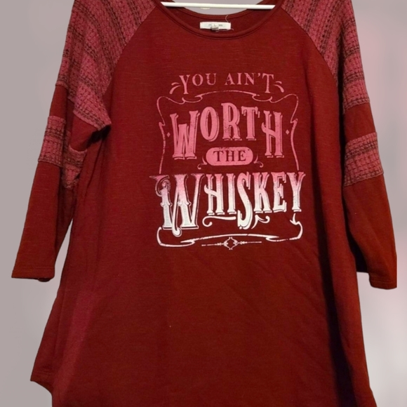 3/4 length sleeves burgundy shirt. size L