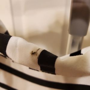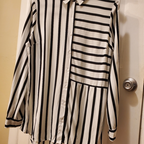 black and white button down shirt. The shirt does have a mark on the color. please see pictures for reference