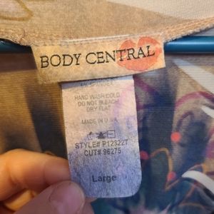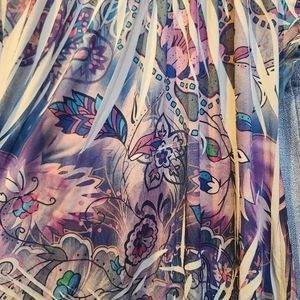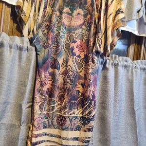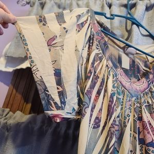 Colorful, soft, and comfy shirt. Cool abstract design. The tag is miscolored from wash. Size Large.