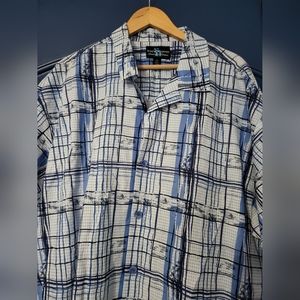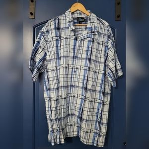Short sleeve blue and white design dress shirt by Steve Harvey. Never been worn