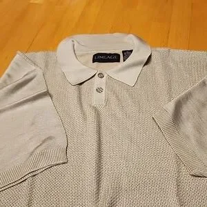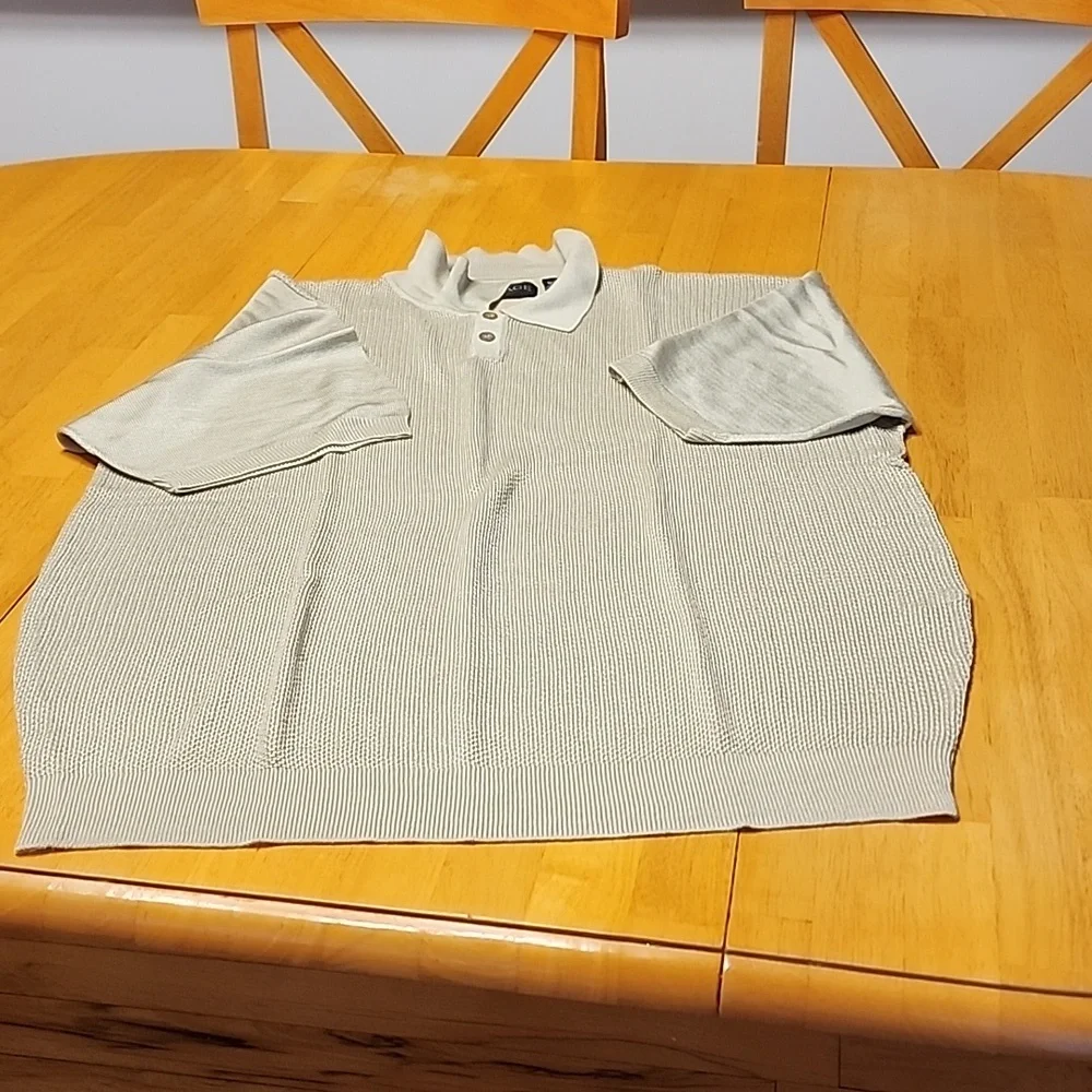 short sleeve sweater type shirt with collar and two buttons. new no tags