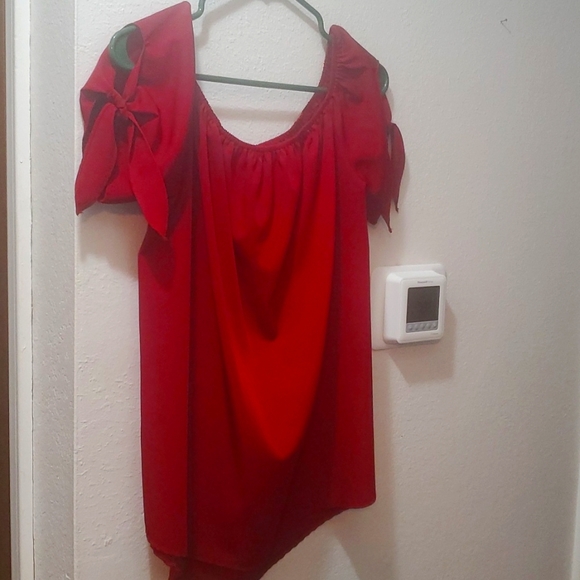 very cute scoop neck blouse eith tassel tie short sleeves.