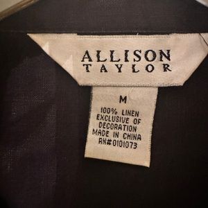 Ladies linen shirt with flowered design stitching on the front only. Back of shirt is solid black.