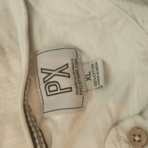 This is an off-white XL shirt made by PX. Perfect for any semi-formal occasion or family get together.