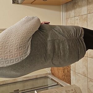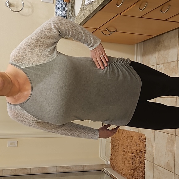 Light gray and white sleeve knit shirt. good condition