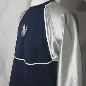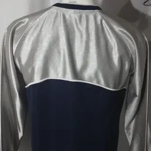chest 22 inches, pit to waist 16 inches. 100% polyester metallic navy blue and silver. full embroidery with long sleeve. used with 9-10 condition. ( B # 10 ))