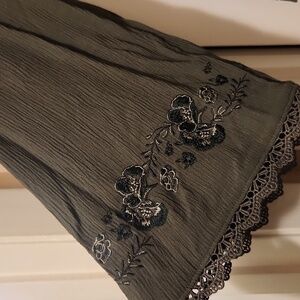 Olive green blouse with decorative sleeves