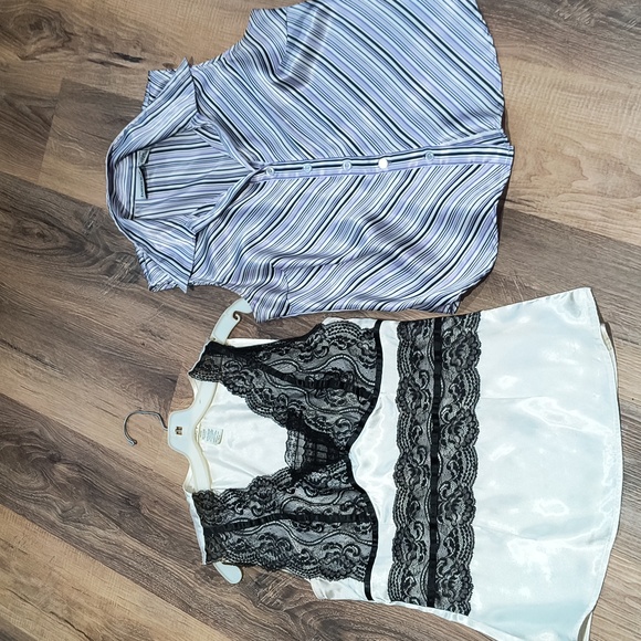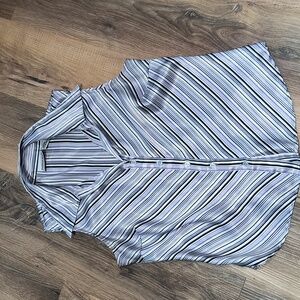 summer shirt bundle or wear under suits or with a skirt to work. size M and size small ( striped purple is a small) but both fit me medium. 100% polyester