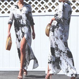 Shirt Dress, Black & White Button Down Dress, Modest Maxi, Summer Shirt Dress