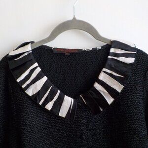 Shirt Jacket - Vintage - Medium -Button Down - Ruffle - Black/White (480)