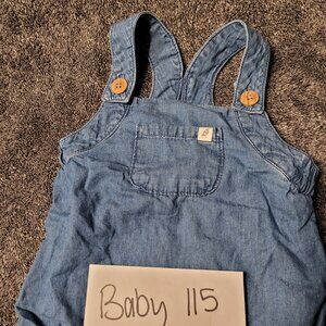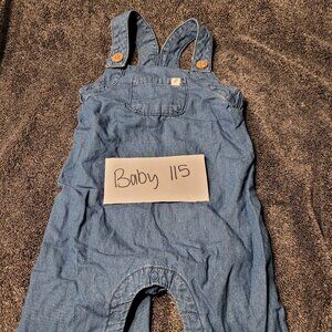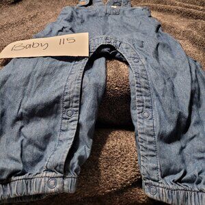 Description: 100% cotton. Has functional pockets and an elastic waist band. Buttons on the overalls can be undone as well.