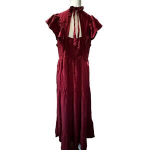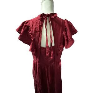 Shirt Ruffled Sleeve Romantic Maxi Burgundy Dress Ruched Chest and Open Back