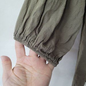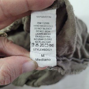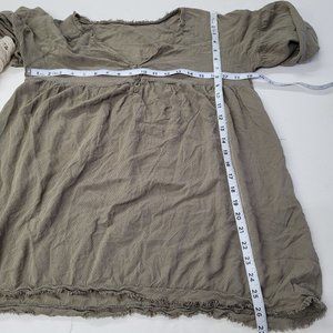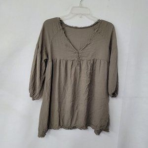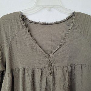 Shirt Women M Bohemian 3/4 Sleeve V-Neck Tunic Olive Frayed Edge Oversized