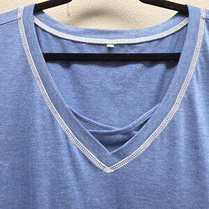 Shirt Womens 4X Blue V Neck Criss Cross Contrast Stitch Plus Size Short Sleeve