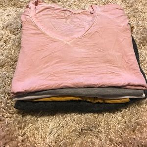 Pink soft sexy tee American eagle ( m) , mossimo vneck gray / white (m), mustard yellow tee(m) , gray Long sleeve boyfriend tee old navy will sell all 5 items for $15/ or $5 individually